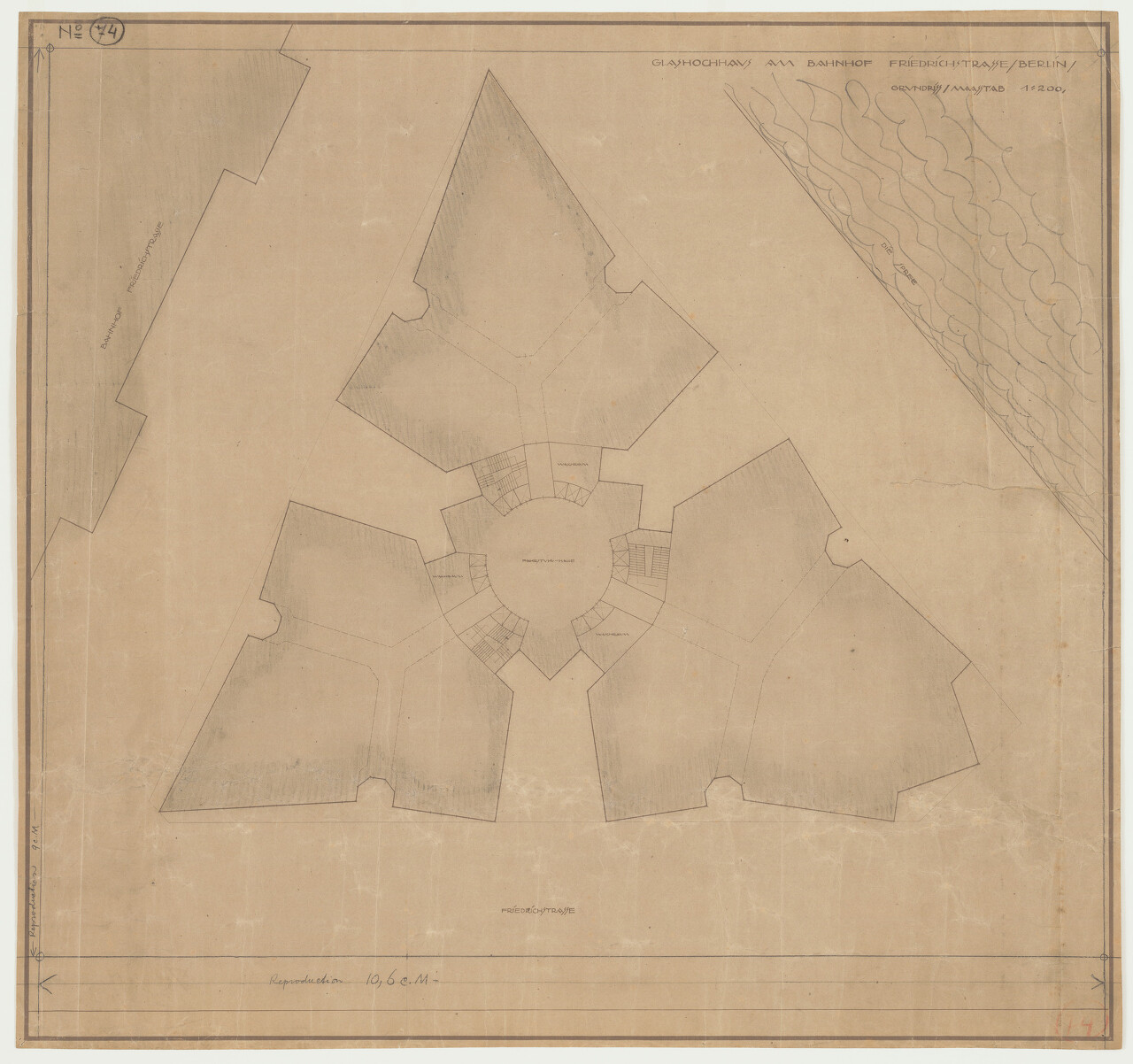 1921년 베를린에 지을(공모 공고가 1921인지는 확실치 않음)독일의 첫 초고층 건축 공모이다. 이 완전히 유리로된 입면을 가진 초고층 빌딩 디자인은 과거 전례가 없는 아이디어였다. 건물을 지지하는 강철구조가 구조체들의 하중을 모두 받아주어 구조에 자유로운 평면형태를 갖고 외피를 유리로 하여 투명한 입면을 만들어냈다. 이는 현대건축의 고층빌딩에서 흔히 볼 수 있는 모습이지만 당시에는 굉장히 혁신적인 아이디어로 평가받았다.